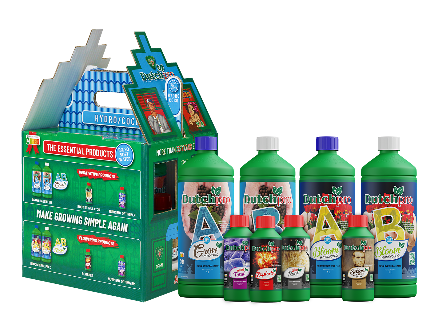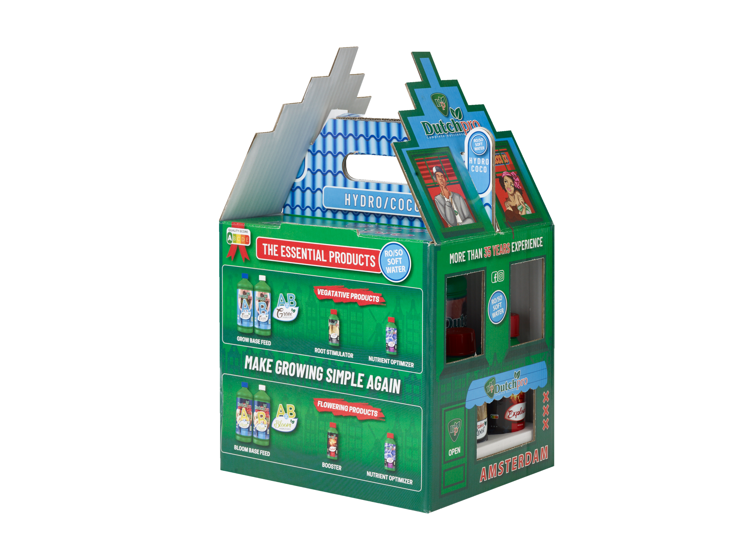 Diese authentisch im Amsterdamer Kanalhaus-Stil gestalteten Sets bieten Ihnen die Möglichkeit, DutchPro Nährstoffe zu einem deutlich reduzierten Preis zu testen.