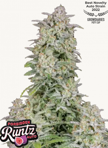 Die Buds sind kompakt, schwer und mit einer dicken Trichomschicht überzogen, was ihnen ein helles, fast weißlich-grünes Aussehen verleiht. Durch die hohe Harzproduktion ist Forbidden Runtz Auto auch für alle interessant, die Wert auf besonders klebrige Blüten und starke Aromatik legen. Indoor sind unter guten Bedingungen Erträge von etwa 450 bis 550 g/m² möglich, outdoor etwa 50 bis 150 g pro Pflanze.