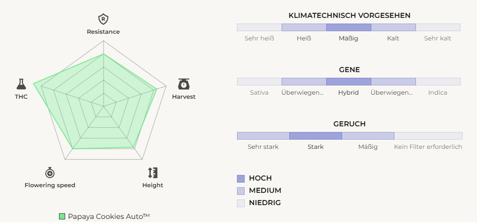 Dank ihrer kurzen Lebensdauer von der Keimung bis zur Ernte ist diese Sorte ideal für schnelle Growzyklen und mehrere Durchläufe pro Saison. Auch für Analyseprojekte wie die Sunshine Grow League bietet Papaya Cookies Auto durch ihre stabile Genetik eine gute Grundlage für vergleichbare Messwerte.